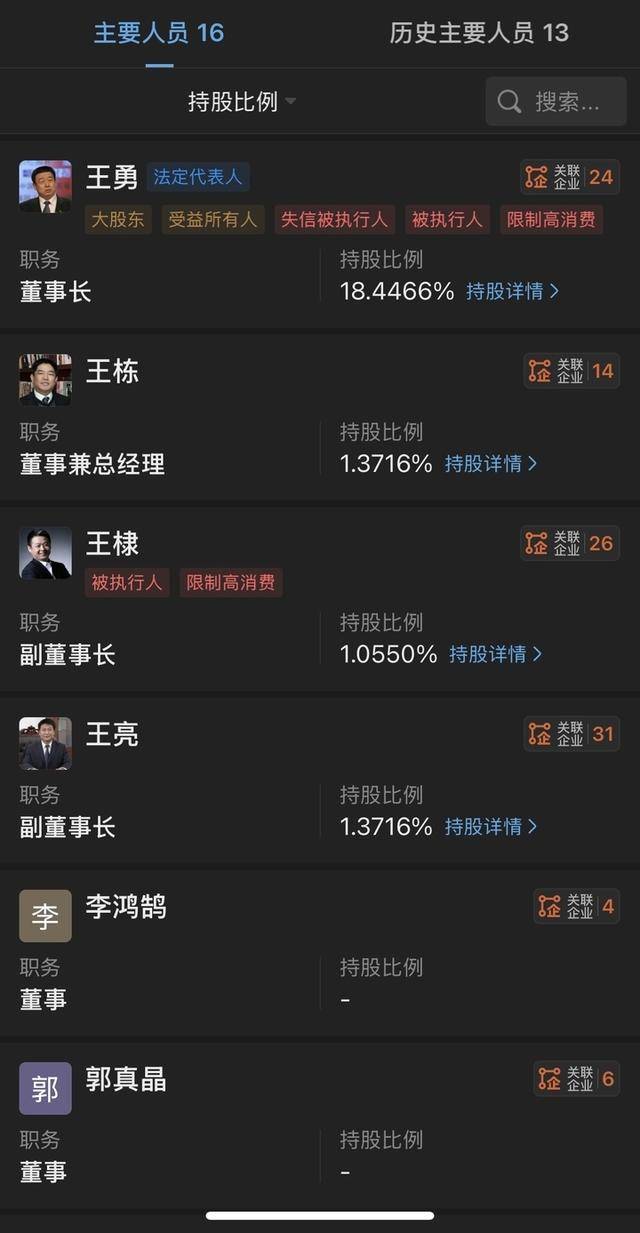 悬赏通告显示,被执行人包括西王集团有限公司、西王国际贸易(青岛)有限公司、王勇、王棣。其中,王勇担任西王集团有限公司法定代表人、董事长。企查查信息显示,王棣担任西王集团副董事长。王勇为西王集团第一大股东,持股18.44%,王棣持股1.05,系西王集团第三大股东。