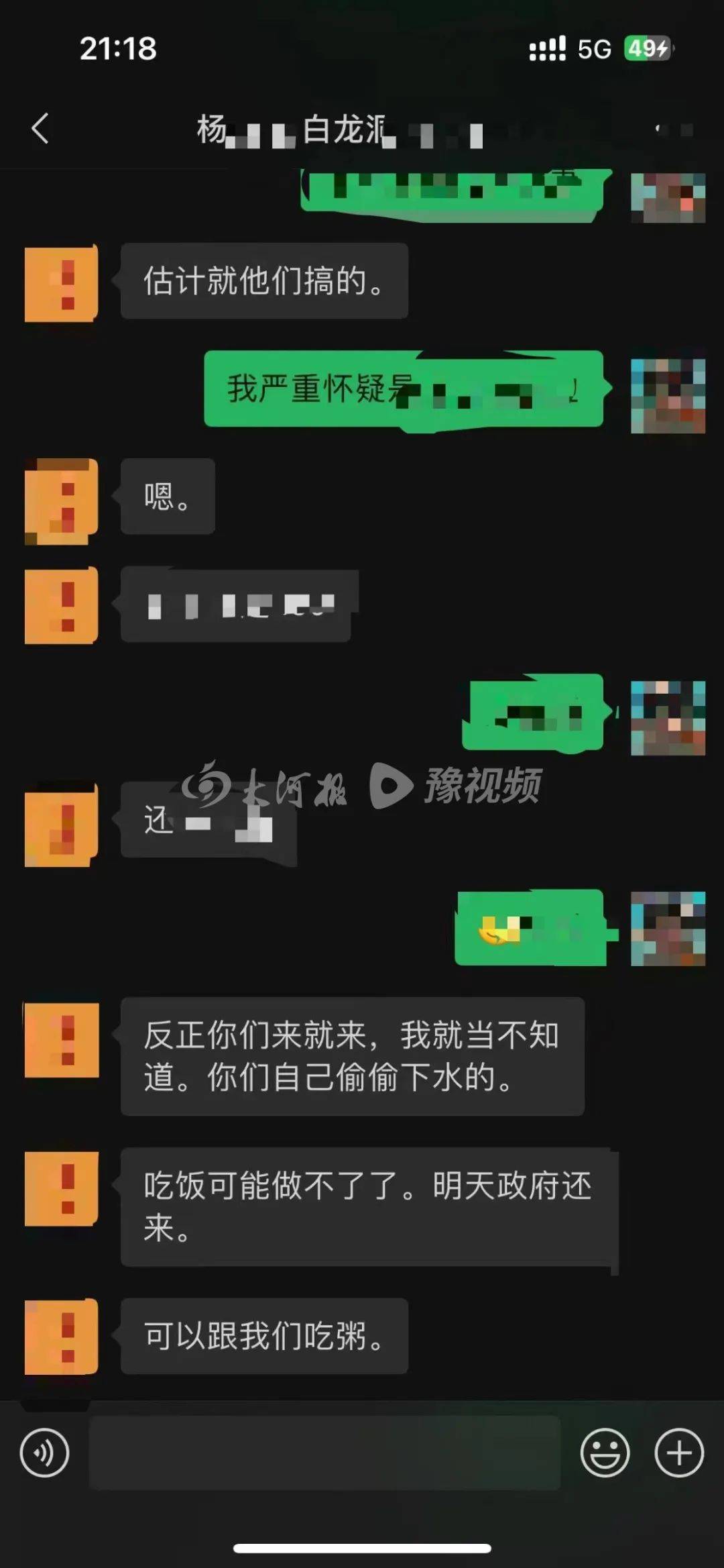 过了两天,“***海里”再次找杨某某预约:“周三能偷偷下不,我们只是在你们家吃饭,其他你不知道”, 杨某某回复“嗯嗯”表情。杨某某透露有人举报他们“潜水吃饭收费”,并回复 “有政府巡查,没有饭了,我们目前没有办理餐饮许可证”“反正你们来就来,我就当不知道,你们自己偷偷下水的”。