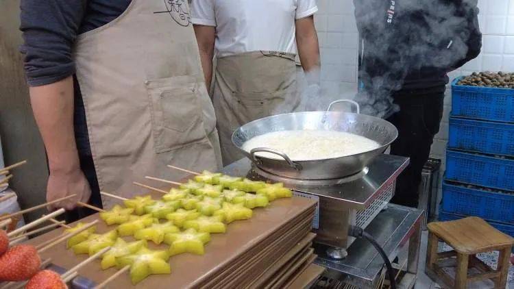 蒋海说,这些背后也有用心挑选,“杨桃和糖葫芦特别搭,杨桃水分特足,有点清香的涩感,加上糖衣就酸甜适中,拍起照来也很好看。”