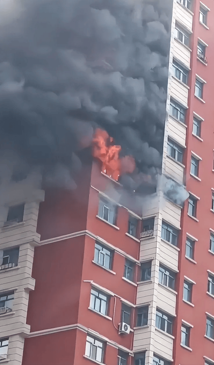 现场视频显示,该小区位于北安市泰山路,一高层住房内燃起熊熊火焰,冒出大量黑烟,消防部门已到达现场进行扑救。另一段视频显示,着火的楼栋内有一人从高层坠下。