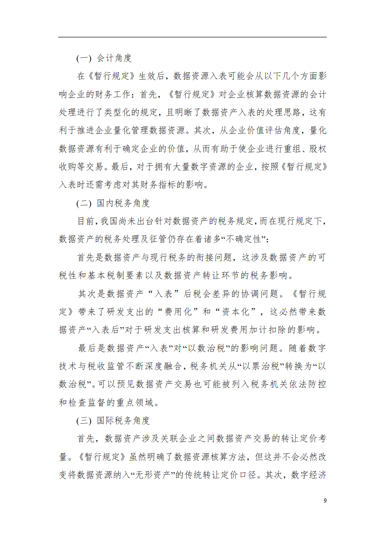 因此,本报告将在梳理《暂行规定》的制定背景、适用范围和主要内容的基础上,分析《暂行规定》对企业数据资产化的前提合规条件,并详细说明企业数据资产在税务安排、资产证券化、上市及融资并购、数据竞争及争议解决等领域带来的新的机遇和挑战。