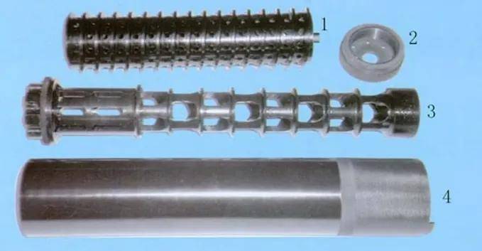 CS/LS06的弹筒全称叫双口式托拨弹同体随机装弹螺旋弹筒,可以简单的理解成把弹鼓拉长,让枪弹的径向运动变成纵向运动。弹筒主要由带着螺旋纹的外壳和带凹槽的螺旋状内芯组成,在装完弹之后要上发条,使得子弹在卷簧的驱动下依次送到抱弹口。和卡利科最大的不同是,他的弹筒有装弹口和进弹口两个洞,简化了压弹步骤。