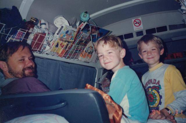 1994年,潘维廉和儿子们在自己的房车里。 采访对象供图
