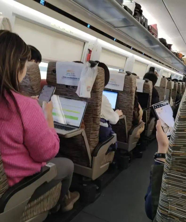 以前乘客为了打发动辄十几个小时的旅途,要带很多吃的喝的、玩的用的;现在列车上几乎都配备了电源插座,用电子设备追番看小说,饭不吃都行。