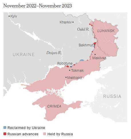 2022年11月到2023年11月的战线变化 《纽约时报》报道截图
