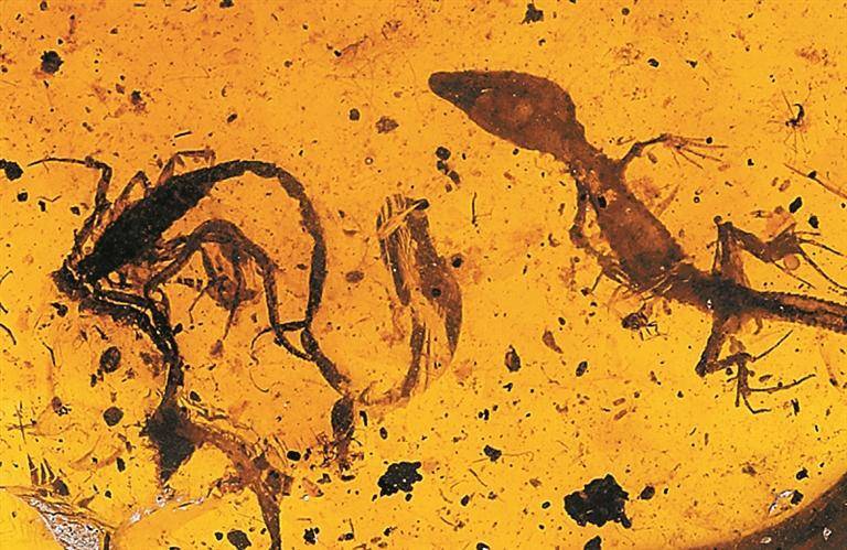 蝎子捕猎、马陆挣扎、蜥蜴虎视眈眈……琥珀重现亿万年前“生死时刻”